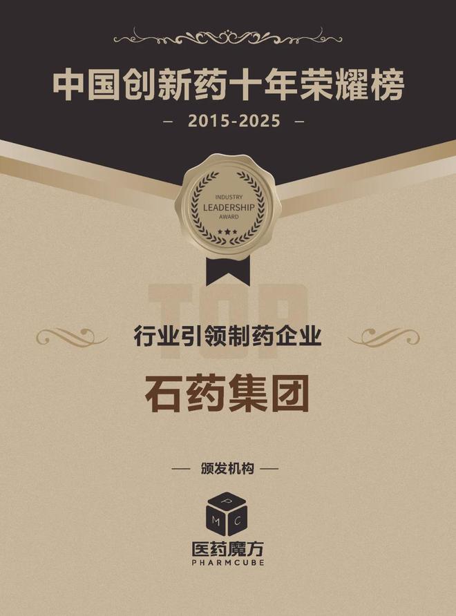 石药集团获评中国创新药十年荣耀榜“行业引领制药企业”